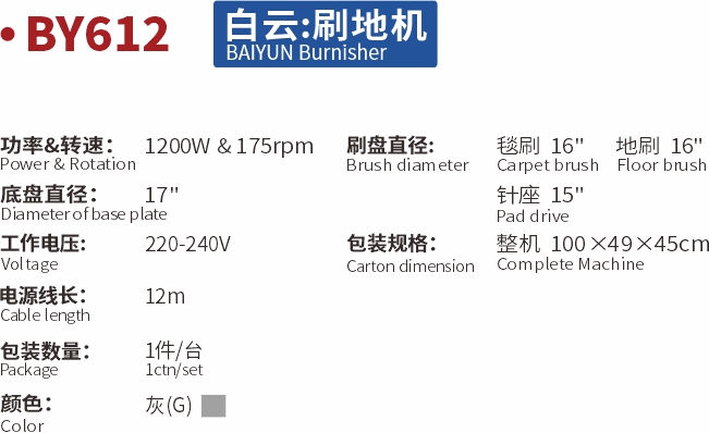 適用范圍:樓宇開荒保潔,工商業(yè)場所硬地面刷洗、起蠟、磨光,酒店賓館等場所地毯刷洗等。